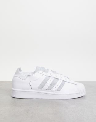 White superstars grey stripes clearance