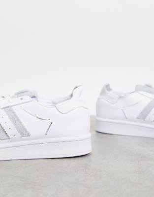 - White superstars grey stripes clearance