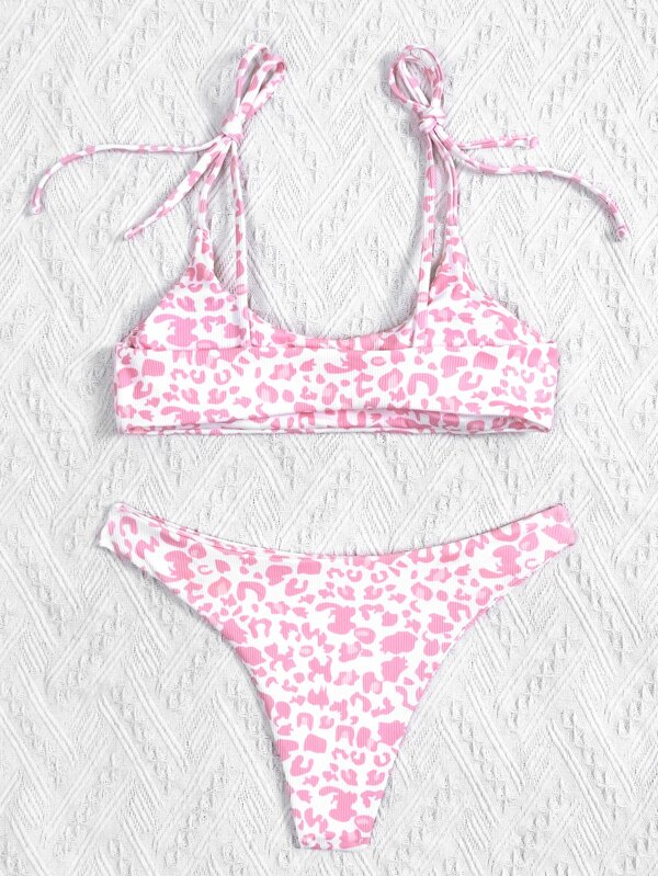 Shein pink leopard swimsuit clearance, Leopard Rib Bikini Swimsuit | SHEIN EUR clearance