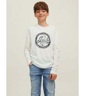 Juniors white long sleeve shirt clearance, Jack \u0026 Jones Junior White Logo Long Sleeve T-Shirt New Look - 13-14 Years clearance
