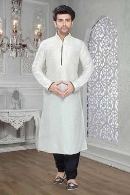 Mirraw mens kurta clearance, Off White Embroidered Art Silk Mens clearance