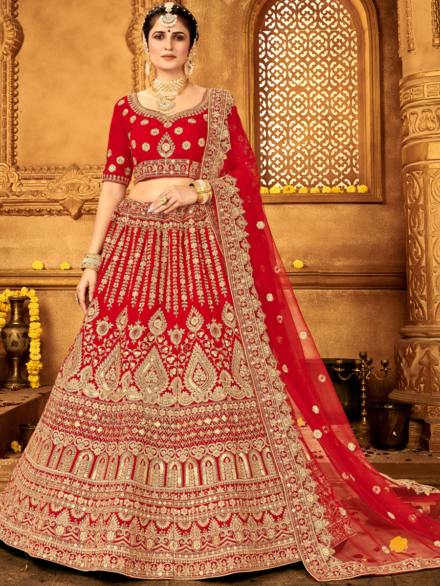 - Shopping Rose red bridal lehenga