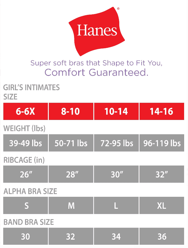 - Hanes training bra size chart clearance