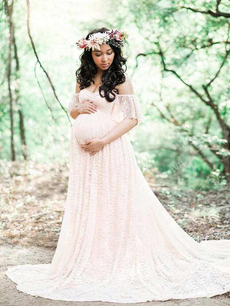 Schwangerschaftskleid shooting shein clearance, Umstandsmode Kleid mit Spitzen Overlay, | aktuelle Trends, günstig kaufen | SHEIN Deutschland clearance