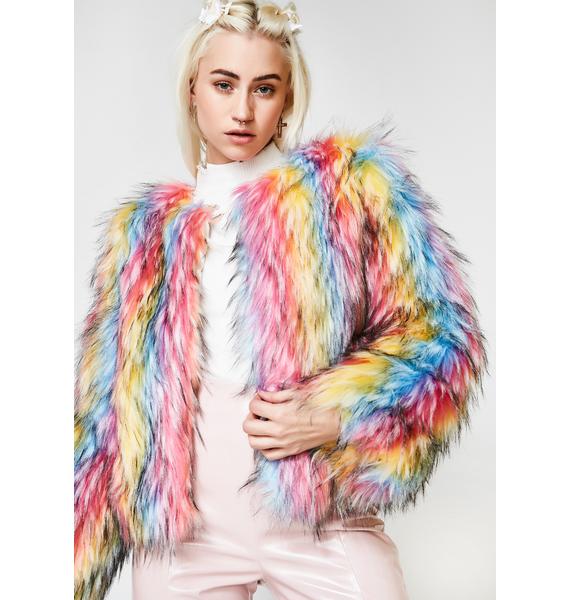Fuzzy rainbow jacket clearance, Cropped Faux Fur festival Jacket clearance