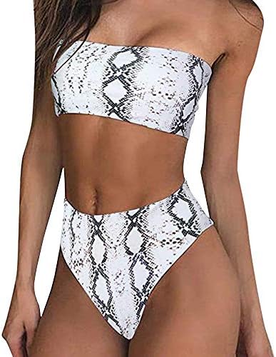 Strapless snakeskin bikini clearance, Snakeskin Bandeau High Waisted Bikini clearance