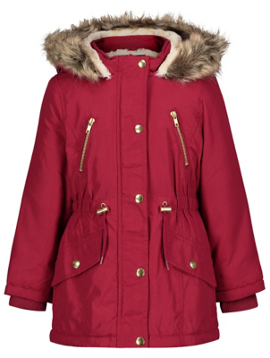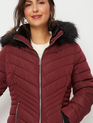Burgundy faux fur coat asda clearance