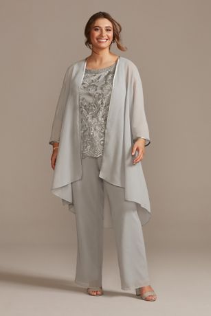 Bridal pantsuit plus size clearance, Tonal Beaded Chiffon Plus-Size Pantsuit clearance