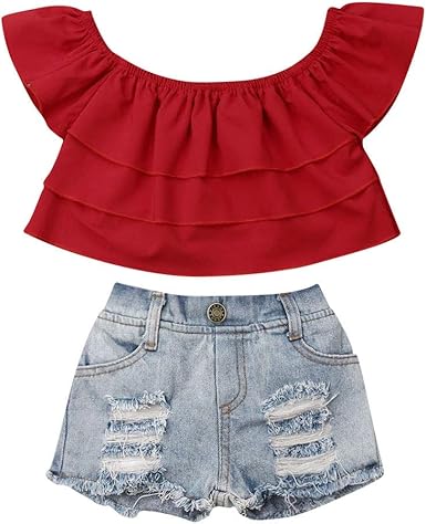 Off shoulder and shorts outfit clearance, Toddler Baby Girl Denim Shorts Outfit clearance