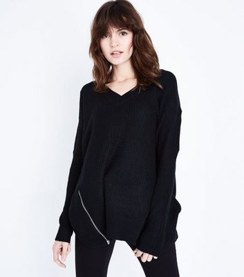 Side zip jumper clearance, QED Black Side Zip Jumper | New Look clearance
