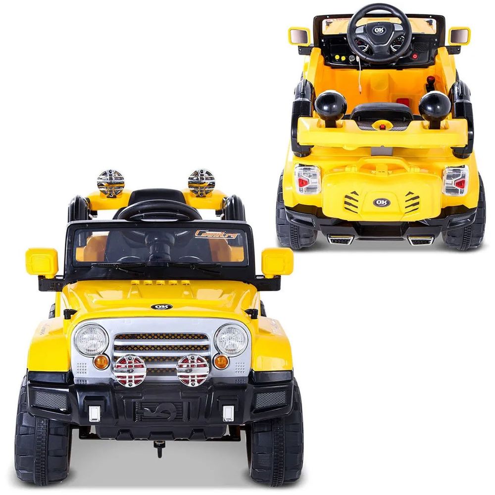 Jipe amarelo infantil clearance, Carro Elétrico Carrinho Infantil Jipe Trilha com Controle Remoto Entrada Auxiliar MP3 12V 2 Portas clearance