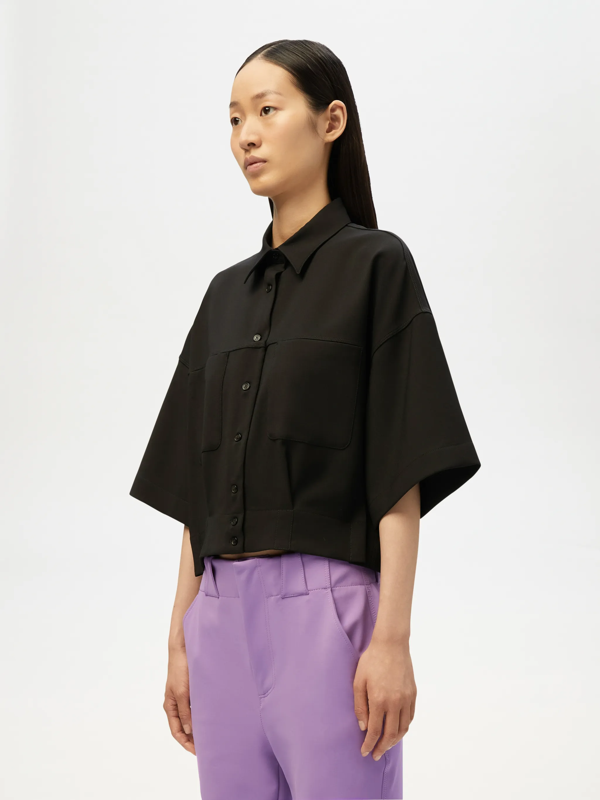 - Cropped short sleeve shirt