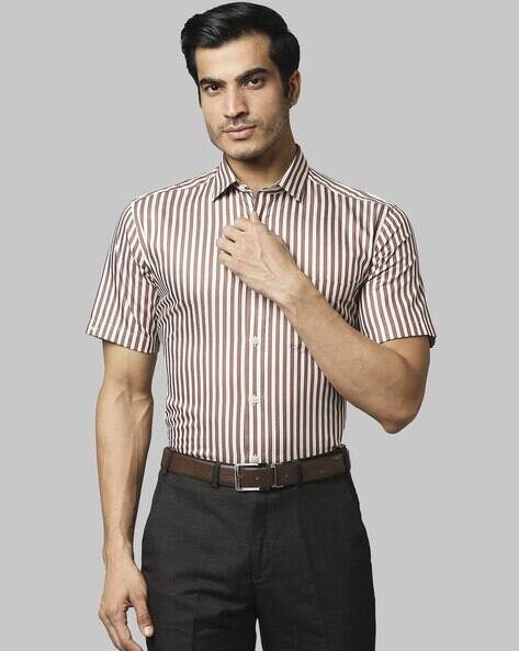 Striped brown shirt clearance