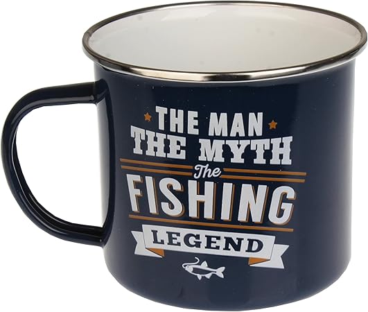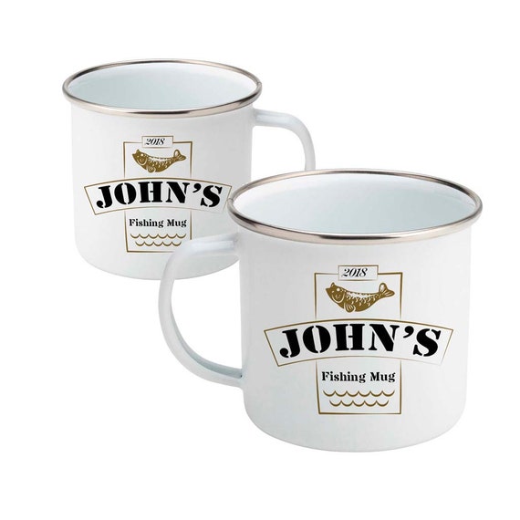Personalised fishing mug clearance, Fishing mug men's personalised enamel clearance