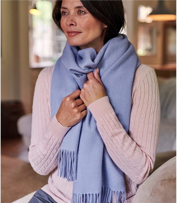 Woolovers scarves clearance, Cornflower | Wide Pure Wool Scarf clearance