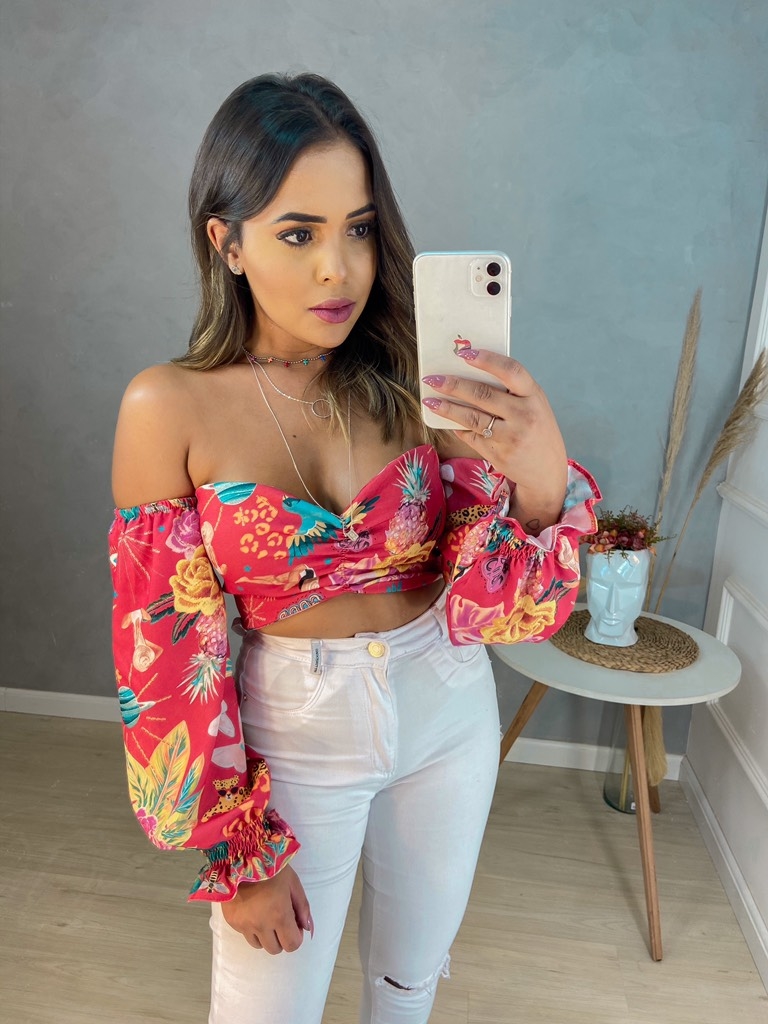 - Cropped ciganinha estampado outlet