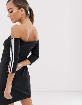 - Adidas originals three stripe bardot dress in black clearance