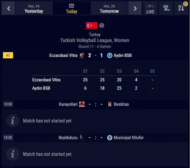 - Livescore volley pro a