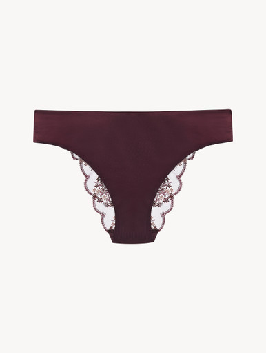 Slip francais brodé clearance, Slip brésilien en viscose stretch bordeaux et tulle - La Perla - France clearance
