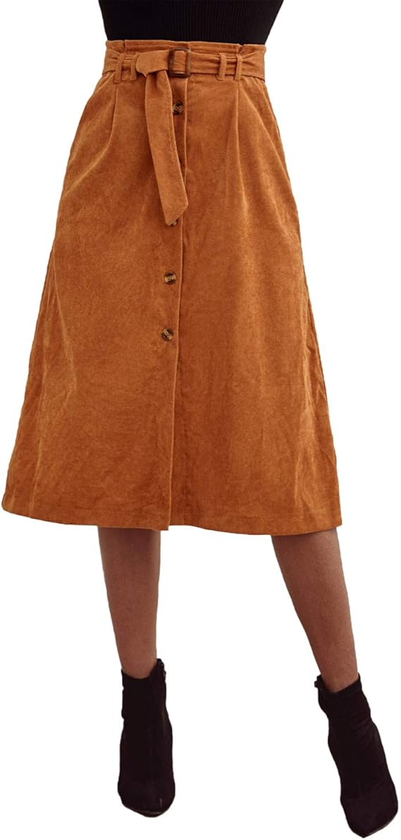 Jupe longue velours côtelé clearance, BaronHong - Jupe trapèze mi-Longue élégante en Velours côtelé à Taille Haute pour Femmes avec Ceinture: Amazon.fr: Vêtements et accessoires clearance