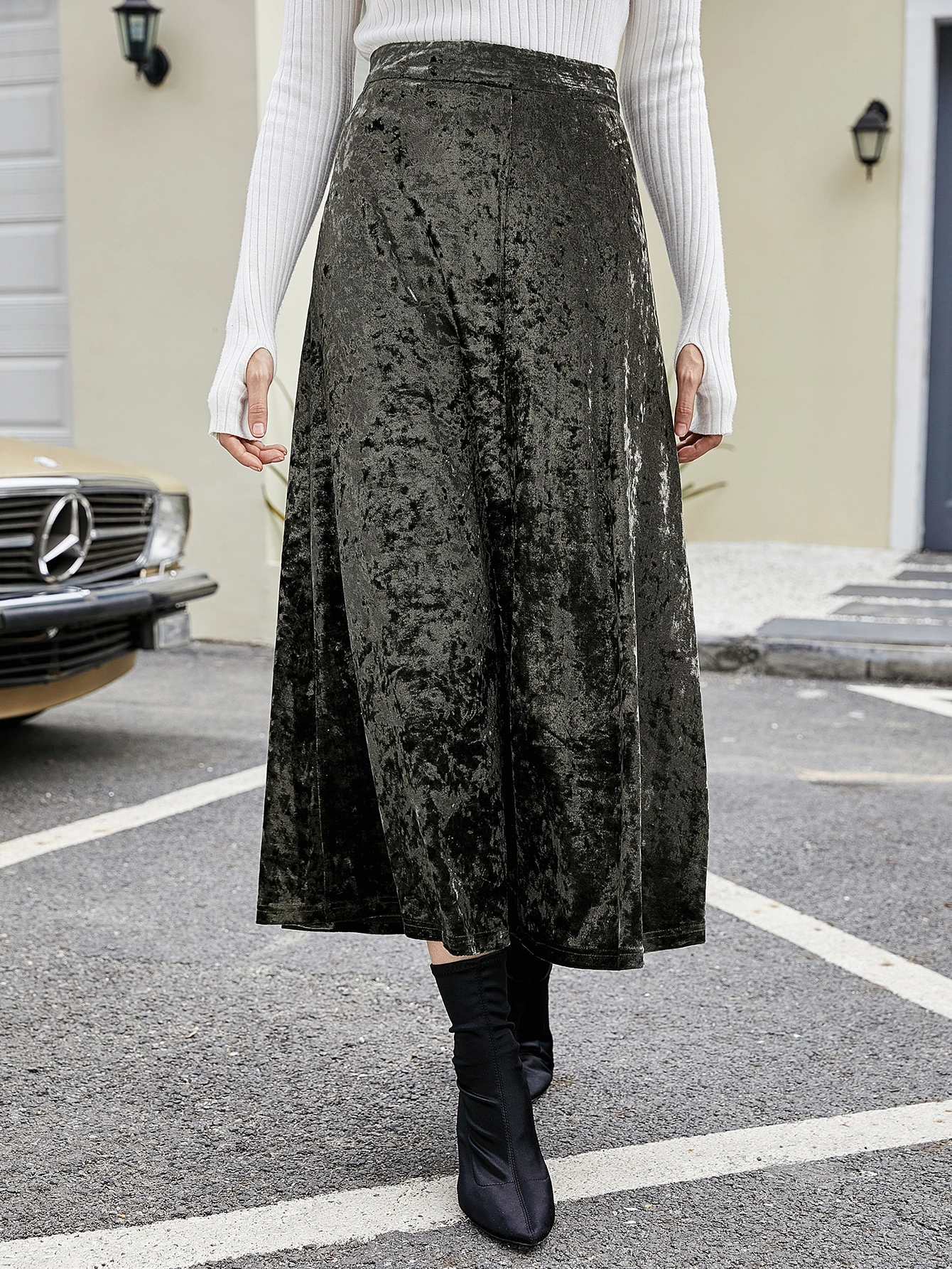 - Jupe longue velours côtelé