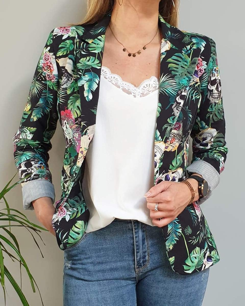 Tete veste pour femme clearance, Veste Tailleur Noire têtes de Mort Fleuries et Feuillage Exotique Vert: Amazon.fr: Vêtements et accessoires clearance