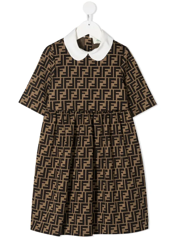 Ff print dress clearance, brown Fendi Kids FF-logo print dress clearance