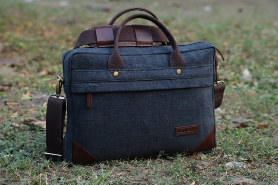 Mens monogrammed laptop bag clearance, Monogrammed Laptop Bag Jute and Leather clearance