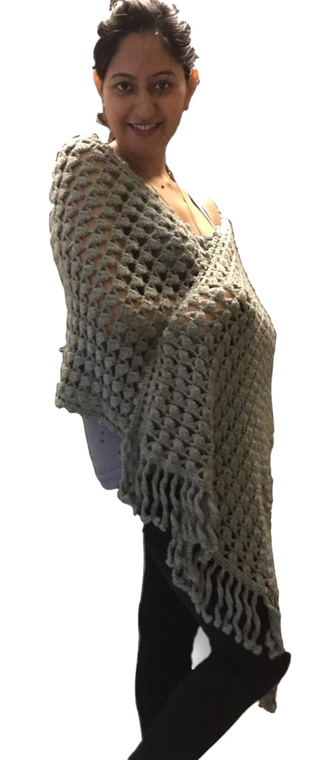 Handmade woolen stole clearance, Crocheted Handmade Woollen Stole, Grey clearance
