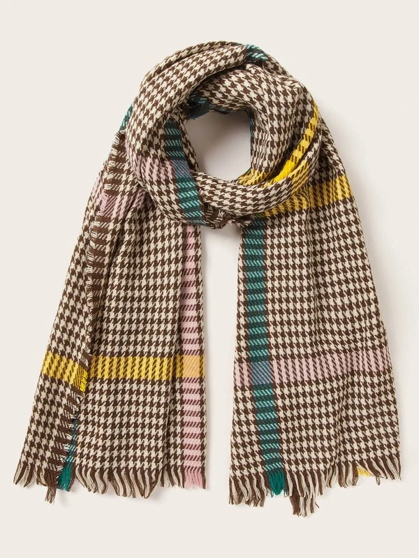 Echarpe shein clearance, Écharpe effilochée à pied-de-poule | Mode en ligne | SHEIN FRANCE clearance