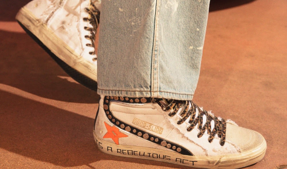 Ggdb slide clearance, Slide sneakers in gold laminated leather | Golden Goose clearance