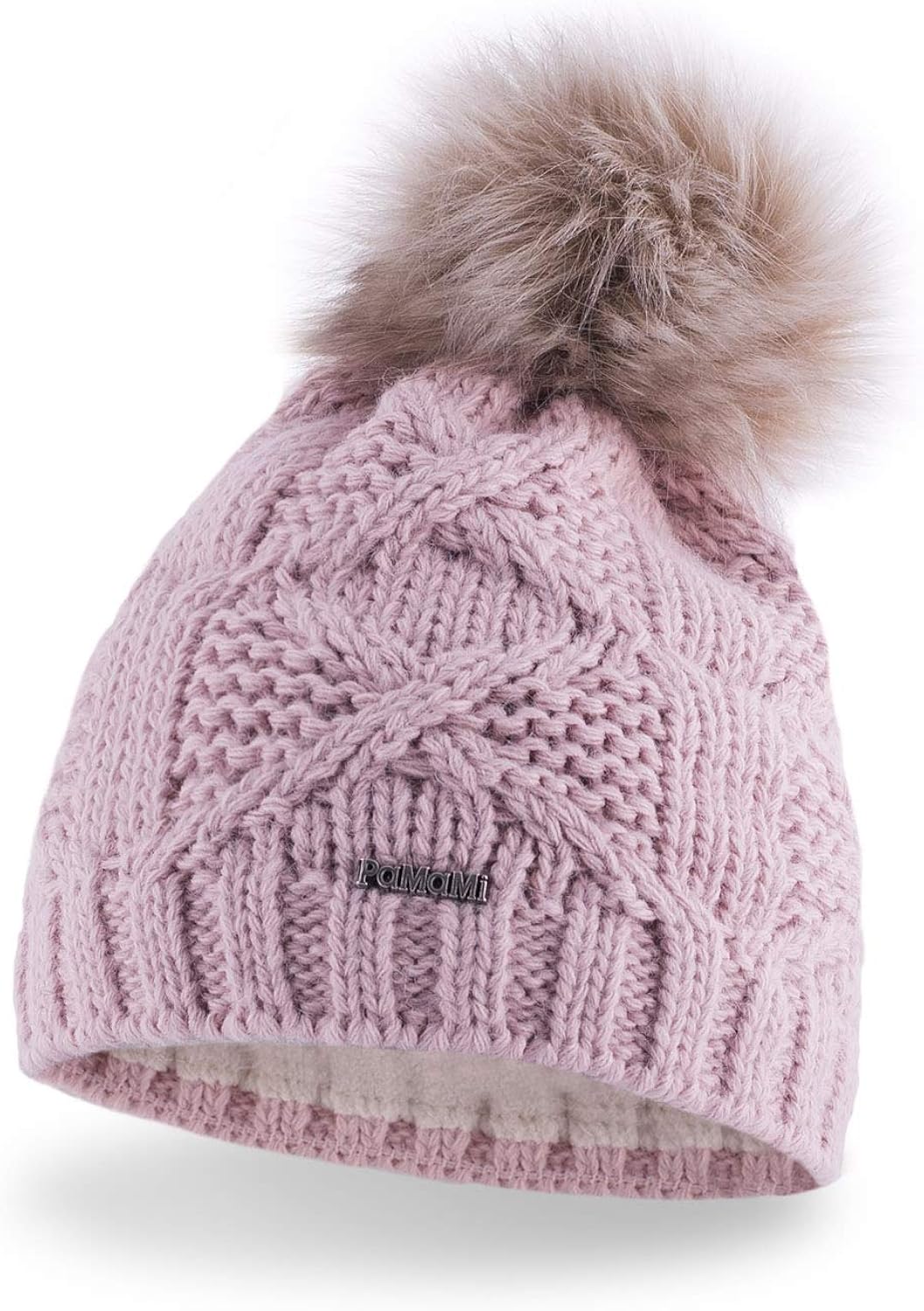Fleece lined hat womens clearance, Knit Fleece Lined Pom Pom Hat clearance
