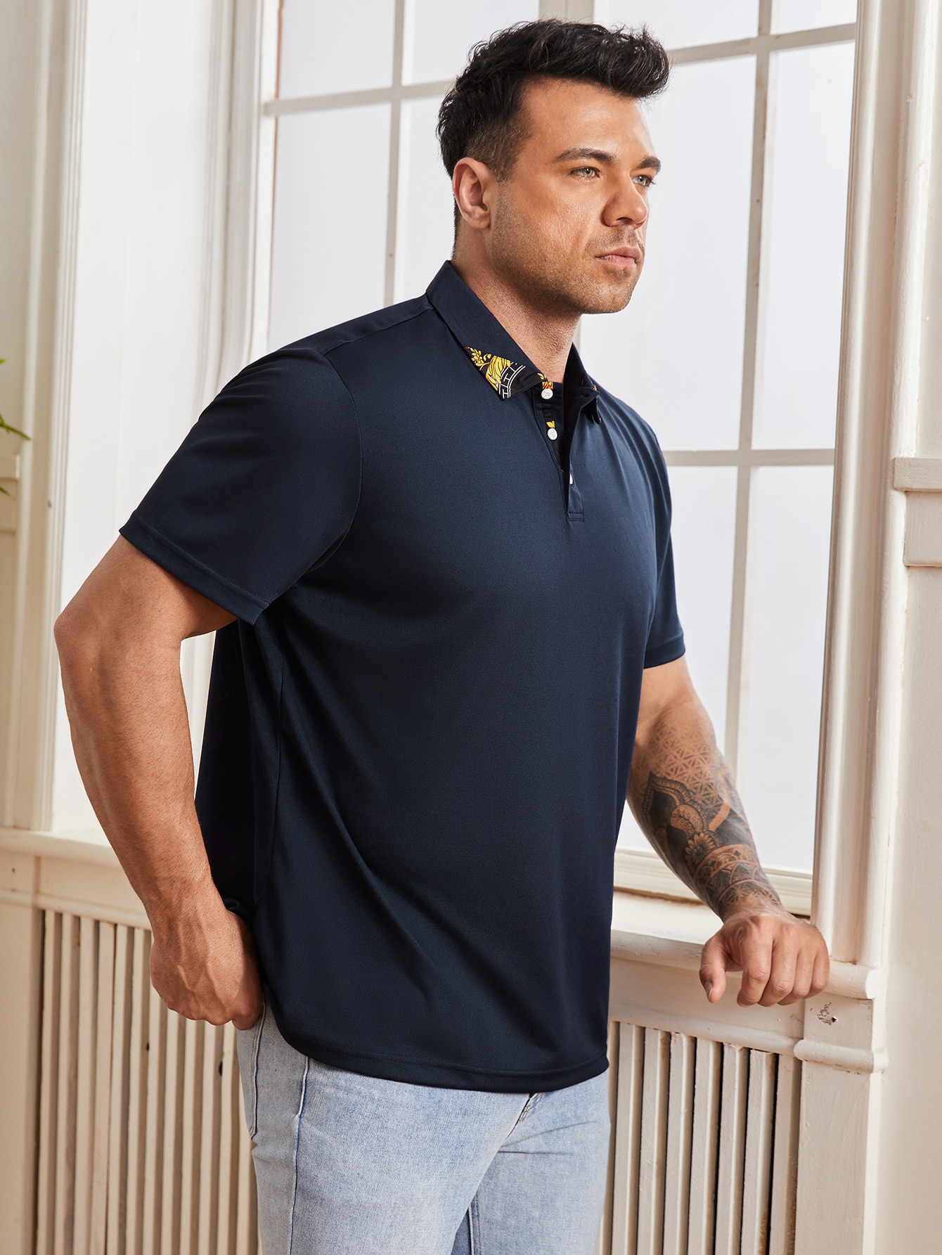 Mens contrast collar polo shirt clearance, Navy Blue Extended Sizes Men Contrast clearance