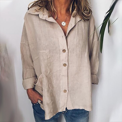 Camisão de linho feminino clearance, Camisa feminina de algodão linho casual sólida manga longa blusa solta com botões nas americanas clearance