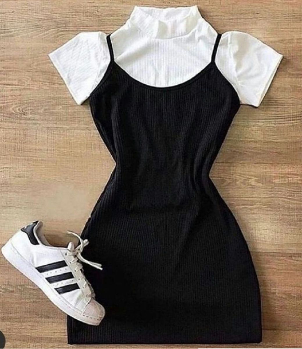 Vestido canelado com blusa por baixo clearance, Sobreposição de vestido com camiseta: saiba como adotar essa tendência clearance