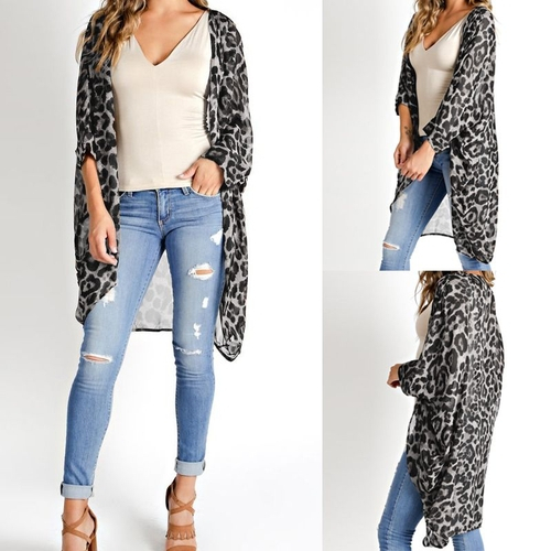 Blusa de manga comprida feminina aberta na frente clearance, Poncho Blusa Cardigan Com Estampa De Leopardo Com Blusa Superior Aberta De Manga Comprida Feminino nas americanas clearance