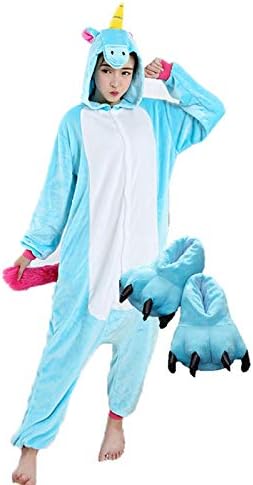 Pijama de unicórnio com pantufa infantil clearance, Combo Pijama Kigurumi Unicórnio Azul com Pantufa Pata Tamanho: G 1, 67-1, 78 | Amazon.com.br clearance