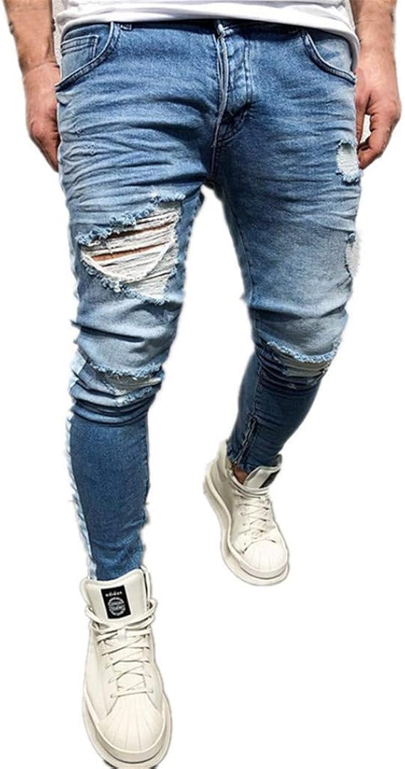 Jean avec trou homme clearance, Envmenst hommes bleu déchiré Jeans pantalon avec trous Super Skinny Slim Fit détruit en détresse Denim Joggers pantalon pour homme | AliExpress clearance