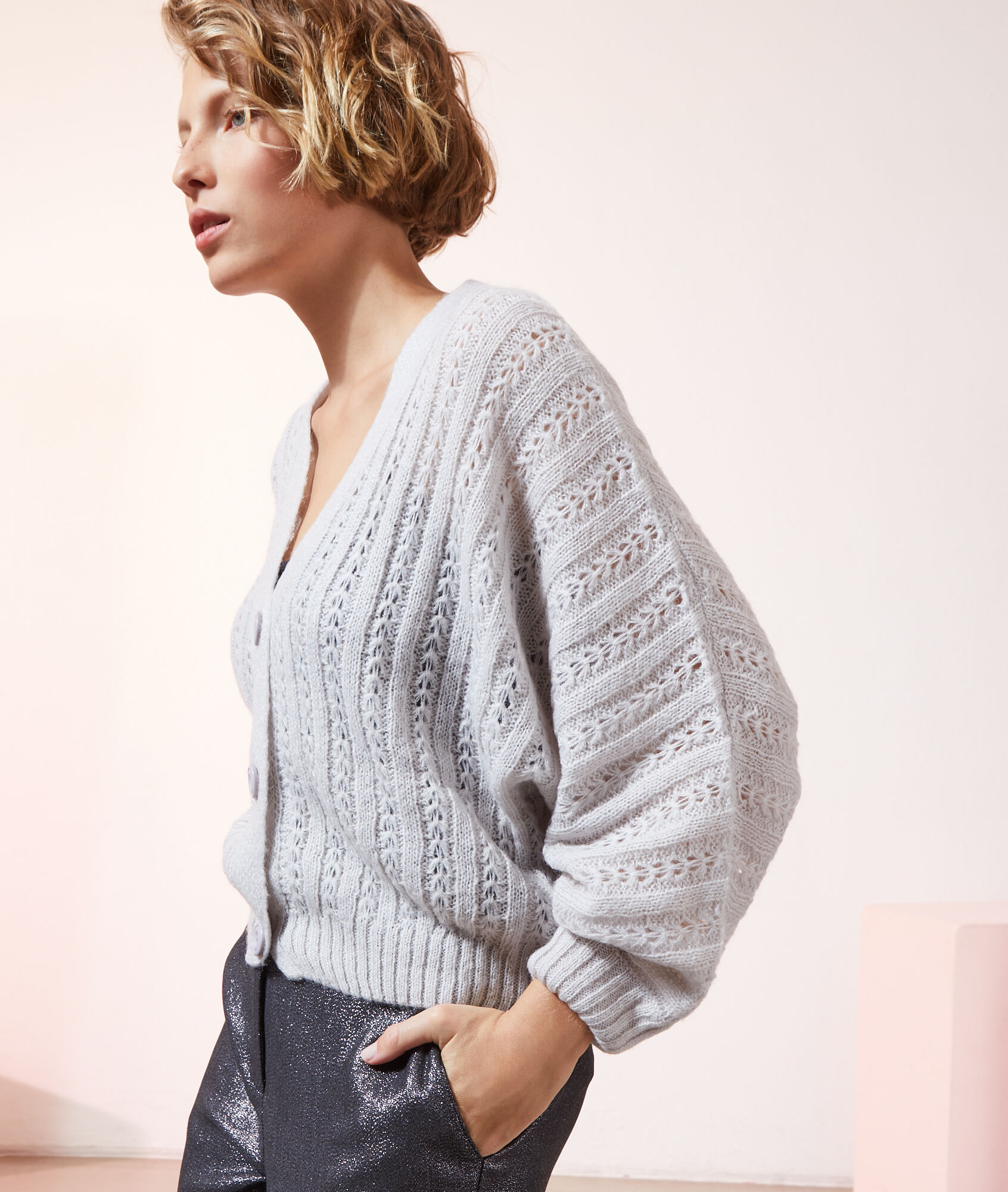 Gilet en maille gris clearance, Gilet ample en maille pointelle - BELLA - GRIS CHINE - ETAM clearance