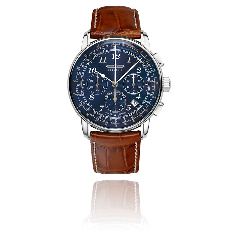 Montre zeppelin los angeles clearance, Montre Homme Zeppelin LZ126 Los Angeles Bleu Argent Marron 7614-3 42mm - Chronographe clearance