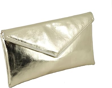 Shiny gold clutch bag clearance, Loni Womens Neat envelope metallic faux clearance