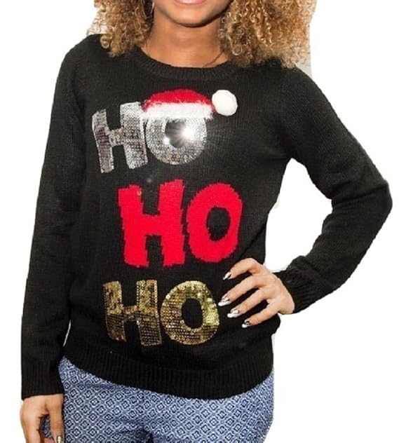 Jumper aménagé occasion clearance, New Women Ladies 3D Christmas HO-HO-HO sequin jumper With Pompom Hat Jumper Tops Women's Sweaters leadeq Clothing, Shoes \u0026 Accessories clearance