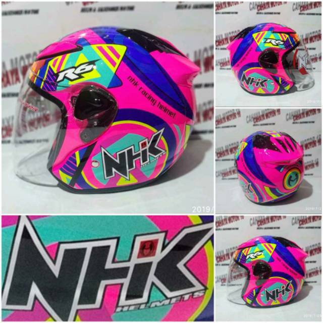 Helm nhk r6 pigment clearance, Jual HELM NHK R6 PIGMENT PINK FLO clearance
