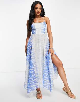 Asos vestidos playeros clearance, Vestido playero midi estampado azul cielo de tejido vaporoso de ASOS DESIGN | ASOS clearance