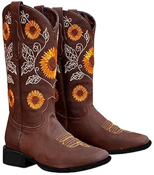 Botas vaqueras punta redonda para mujer clearance, Amazon.com: Botas estampadas de girasol occidental para mujer tacones gruesos vaquera punta redonda botas cortas mediados de pantorrilla bordadas botas: Home Improvement clearance