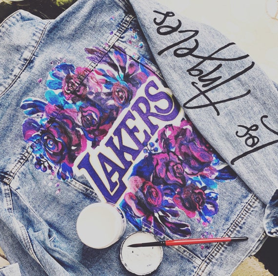 Lakers denim jacket clearance, Hand Painted Lakers Denim Jackets clearance