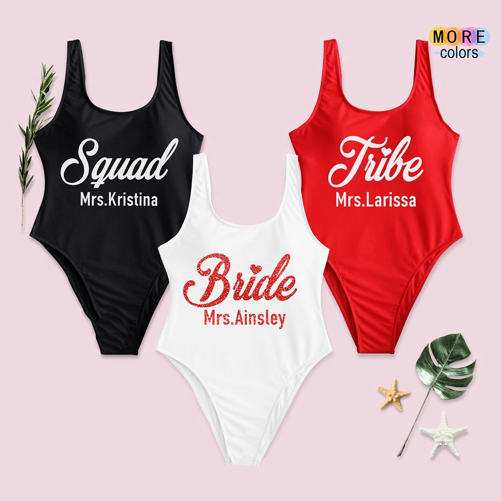 - Cheap Bride squad swimsuit plus size