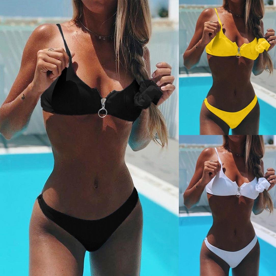 Chicas buenas en traje de baño blanco clearance, trajes de baño Triángulo Bikini blanco acanalado mujeres traje de baño las mujeres de encaje traje de baño Mujer Push Up traje de baño Bikinis rosas traje de baño para las mujeres|Conjunto clearance