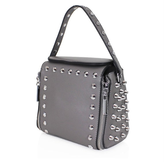 Grey studded handbag clearance, Studded Grey Bag - Etsy clearance