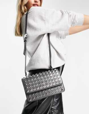 Grey studded handbag clearance
